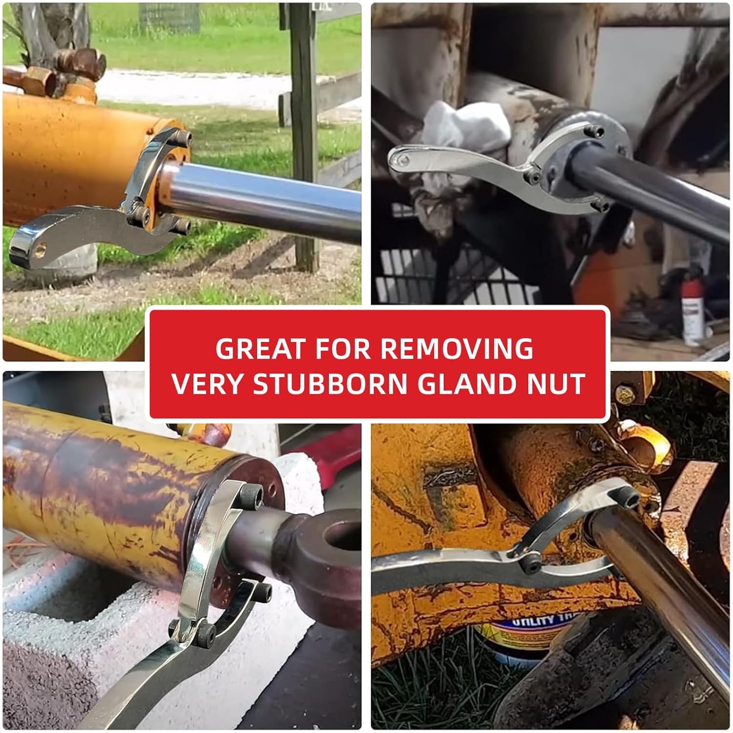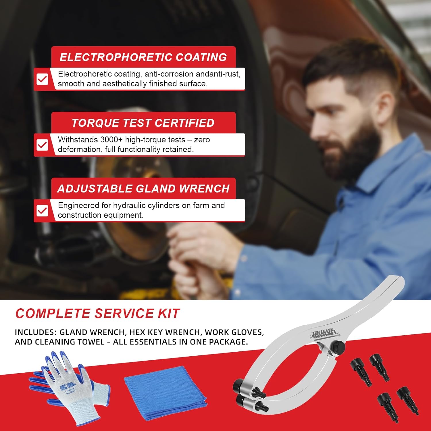 11.8 Inch Heavy Duty ‌Gland Nut Wrench Set‌ | ‌Adjustable Spanner Wrench‌ for 2-9″ Hydraulic Cylinders | Includes 5/32″, 1/4″, 5/16″, 3/8″ Pins & Gloves