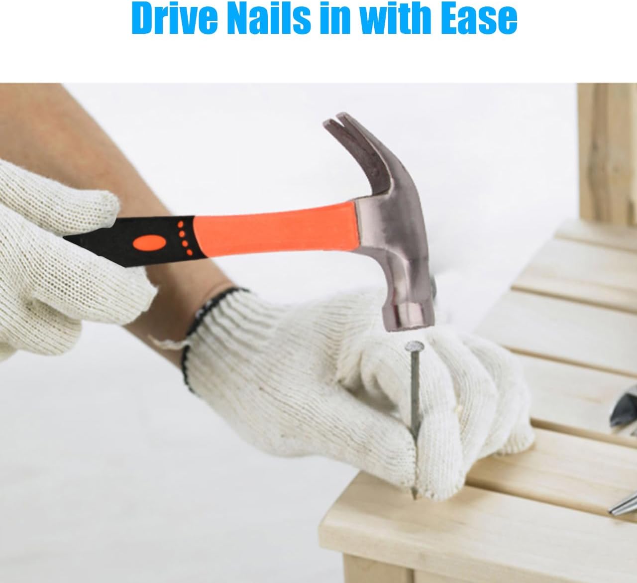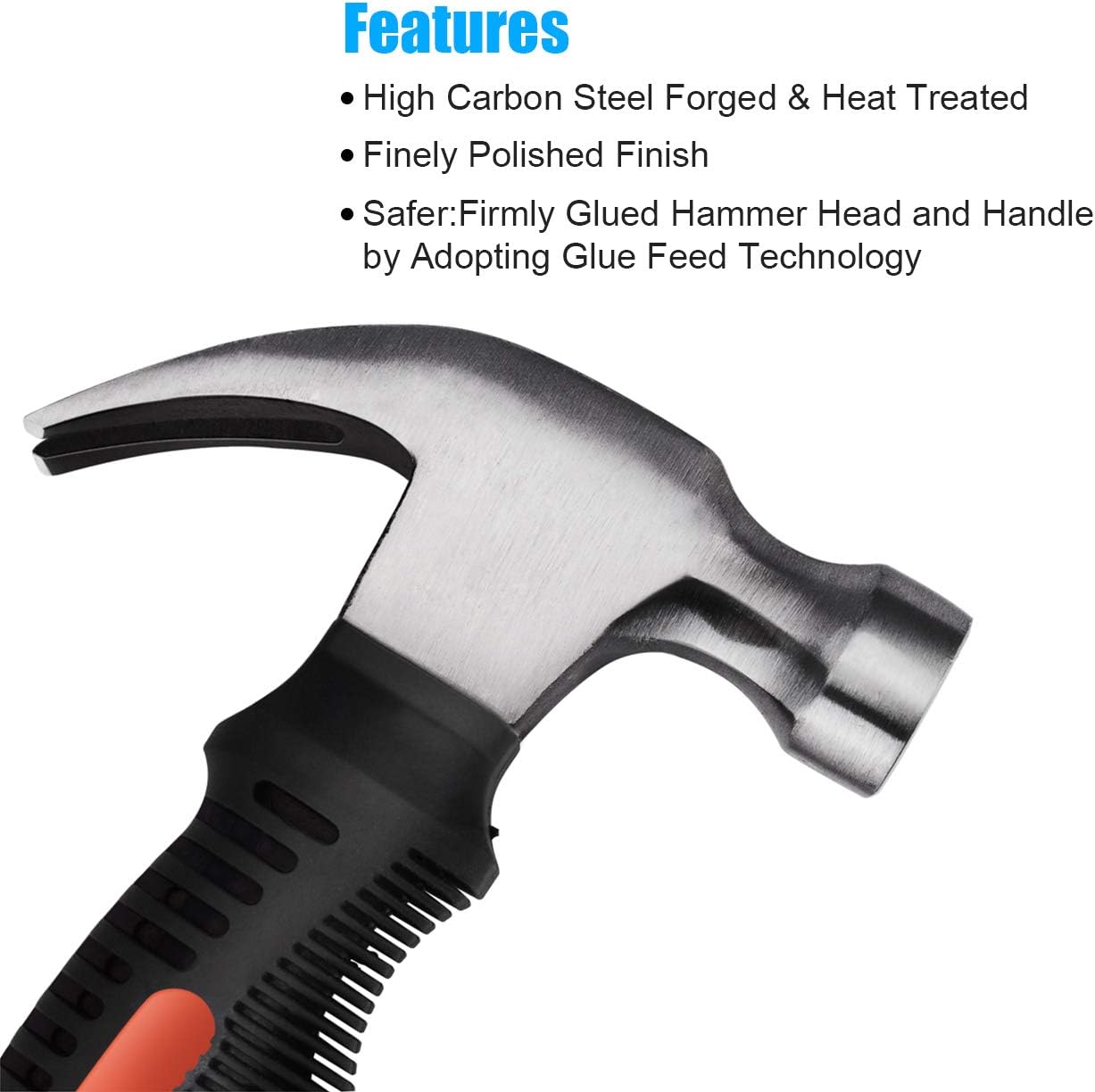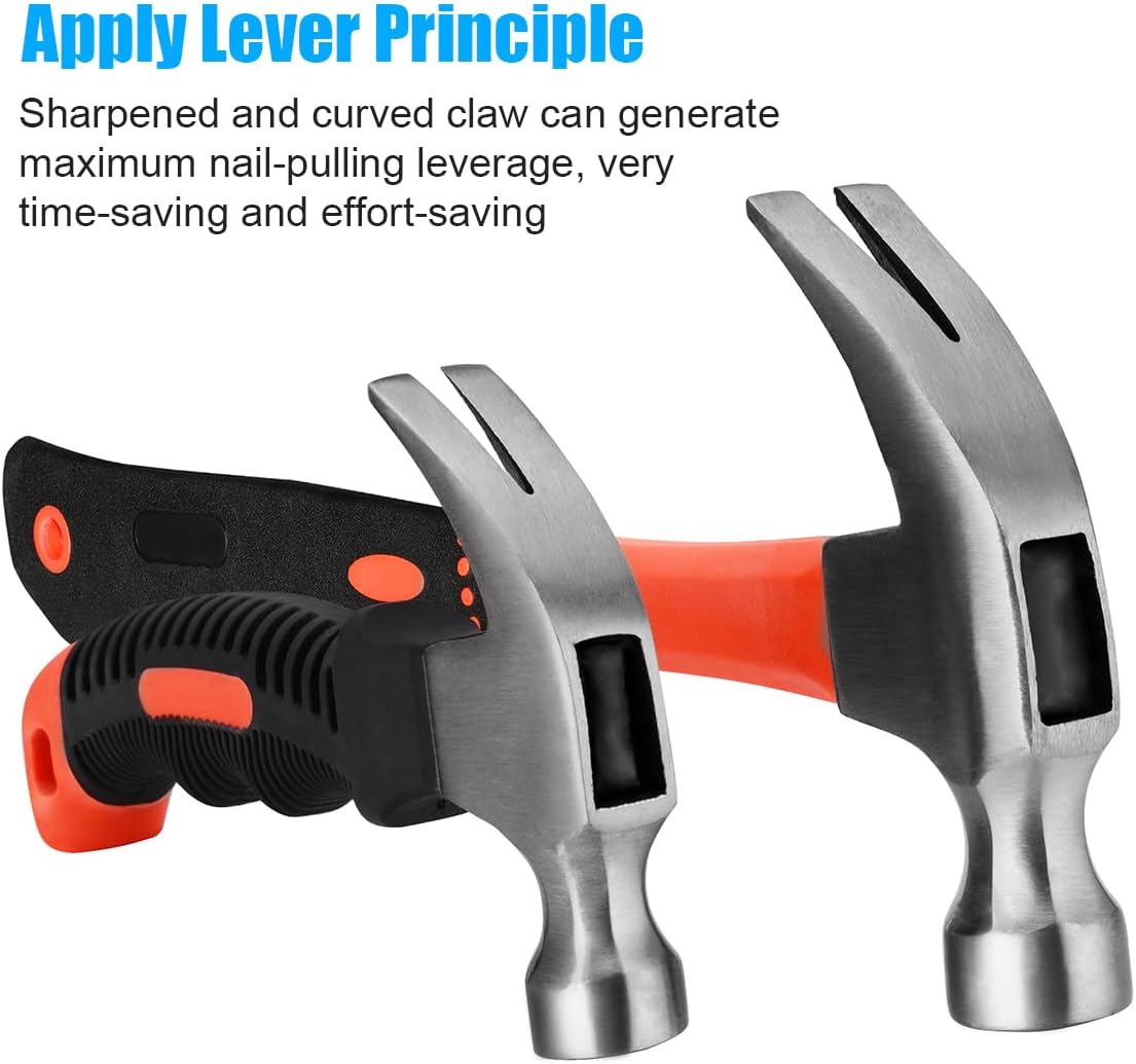 2 Piece Hammer Set,includes 1 Pack 8 OZ Mini Stubby Claw Hammer and 1 Pack 16 OZ Fiberglass General Purpose Claw Hammer,Soft Nonslip Handle & Heat Treated Head,Heavier for Higher Hardness