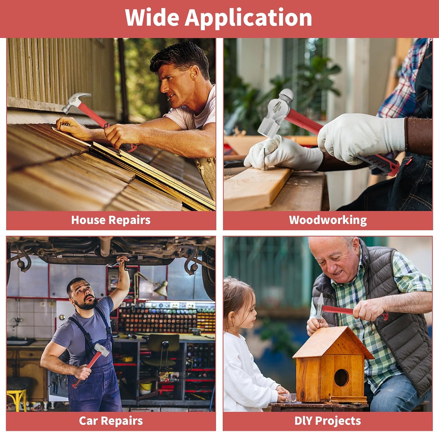 7-Pieces Hammer Set, 24 oz Claw Hammer, 12oz Claw Hammer, 13oz Ball Peen Hammer, 2 Lb Ball Peen Hammer, 3 Lb Sledge Hammer, Engineer Hammer, 10oz Rubber Mallet