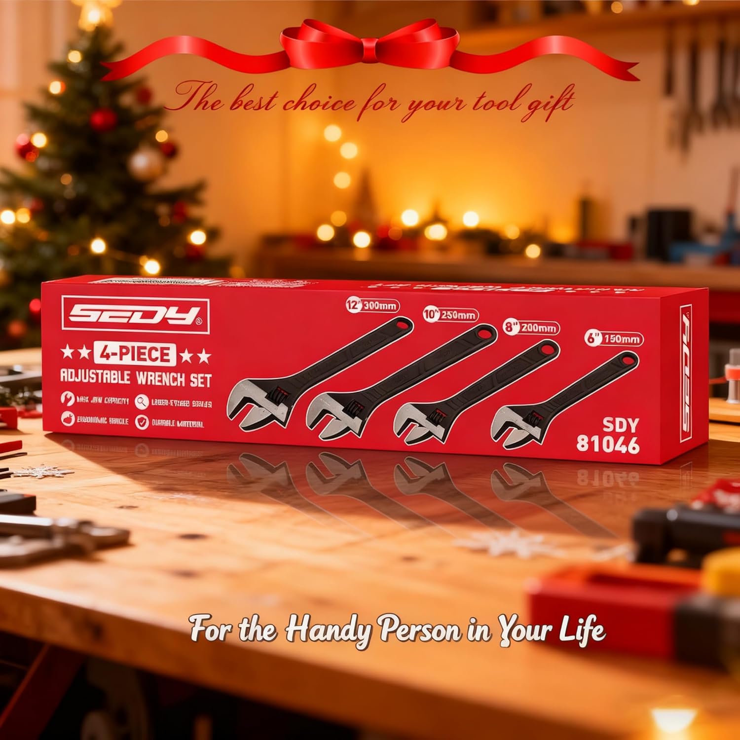 Adjustable Wrench Set Wrenches Sets: 4-Piece 6, 8, 10, 12 Inch Chrome Vanadium Steel Corrosion-Resistant Black Oxide Finish for Automotive Plumbing and Household Repairs