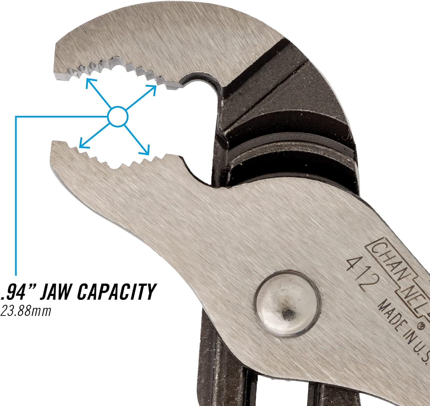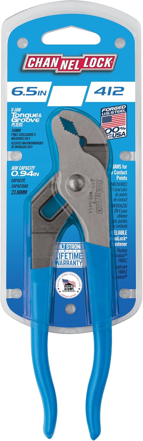 CHANNELLOCK 412 6.5-inch V-Jaw Tongue & Groove Pliers, Made in USA, 0.94-inch Jaw Capacity, Forged High Carbon Steel, More Points of Contact on Round Stock quantity