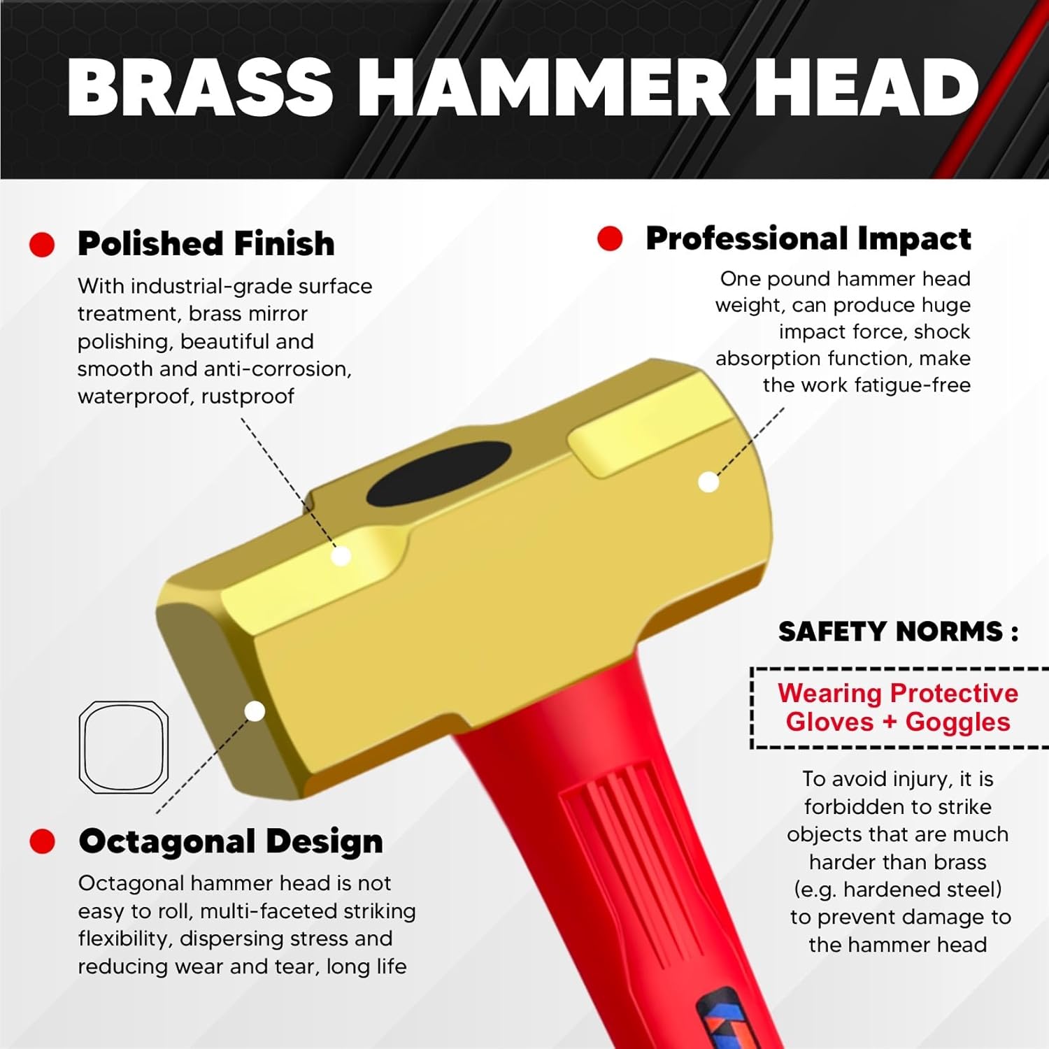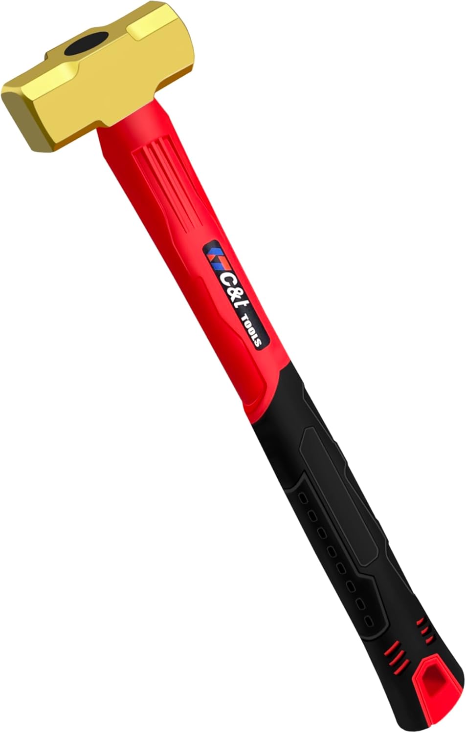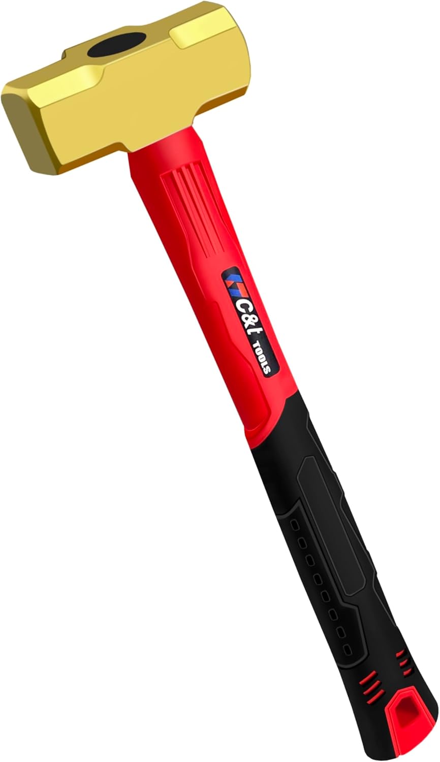 C&T 3lb Brass Sledge Hammer,Non-Sparking,Comfortable Fiberglass Handle,3-Pounds,Non-Magnetic,Corrosion Resistant
