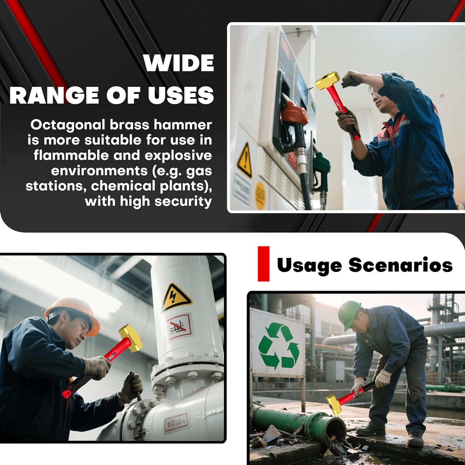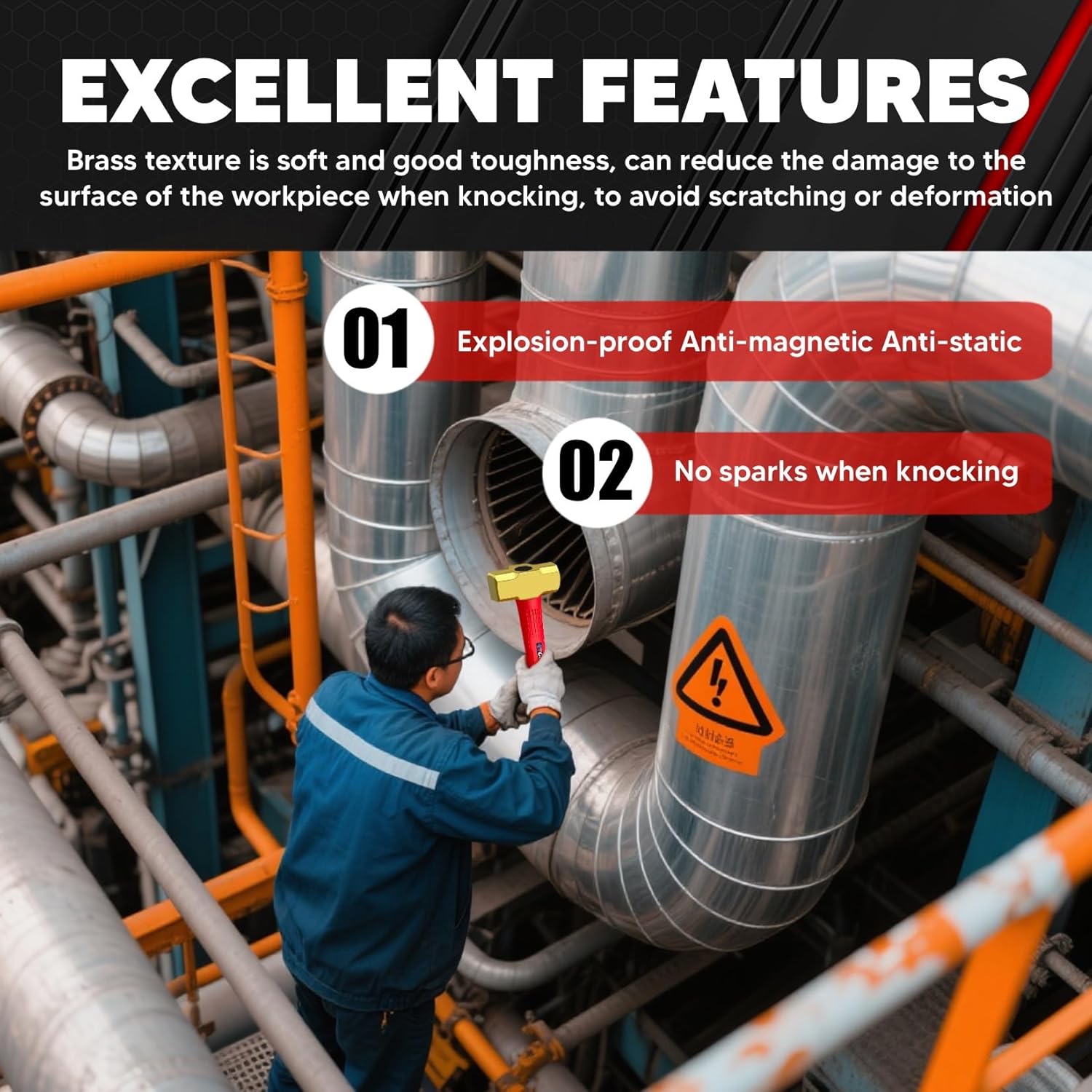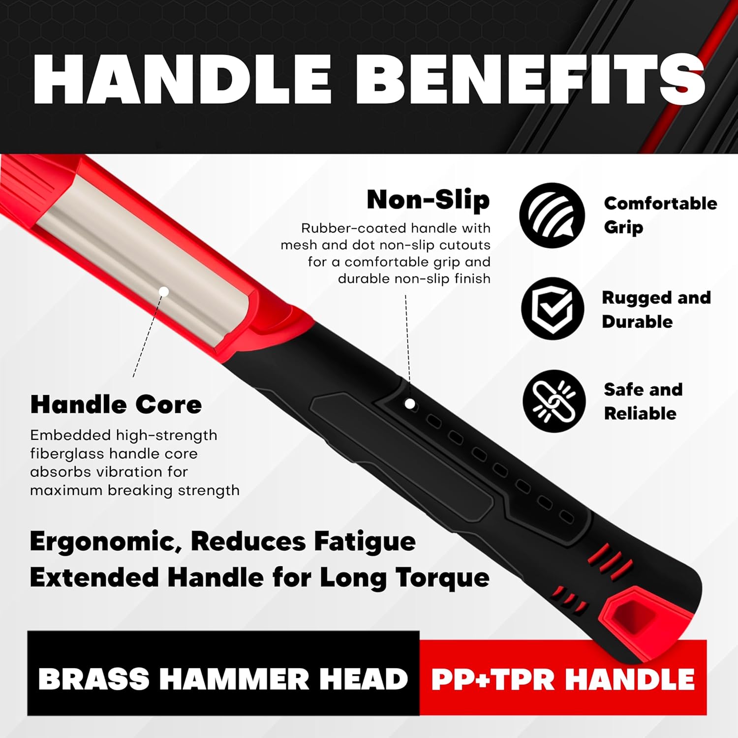 C&T 3lb Brass Sledge Hammer,Non-Sparking,Comfortable Fiberglass Handle,3-Pounds,Non-Magnetic,Corrosion Resistant