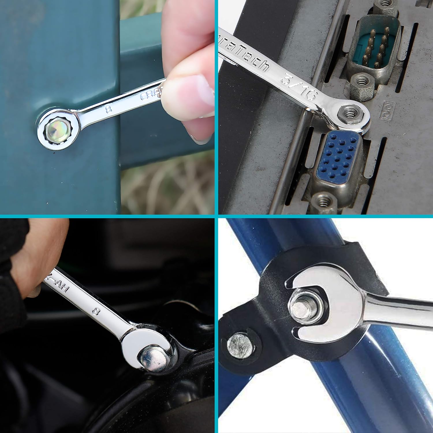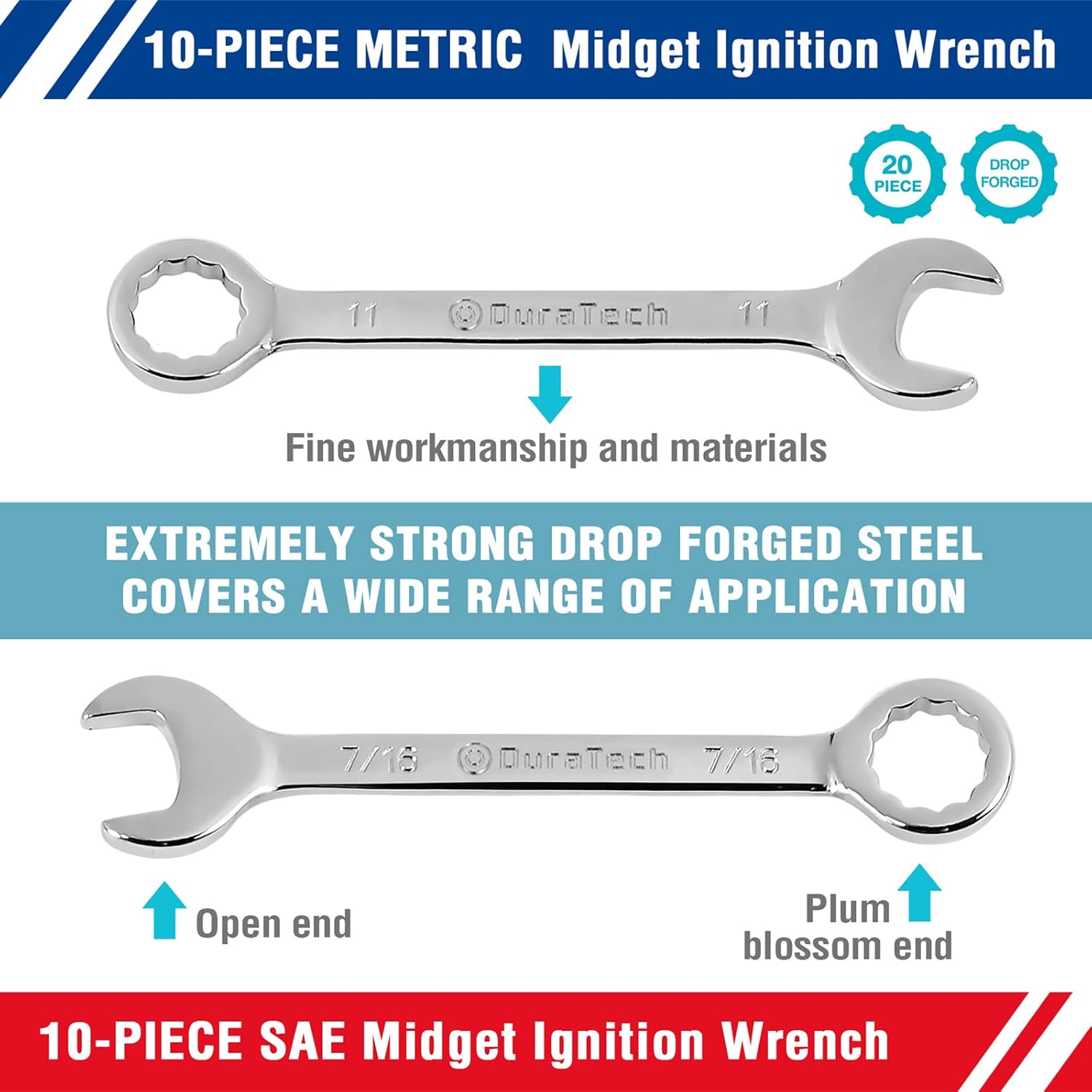 DURATECH Mini Wrench Set, Midget Combination Wrench Set, 20-Piece, Metric & SAE, 4-11mm & 5/32″ – 7/16″, Lightweight, with Rolling Pouch