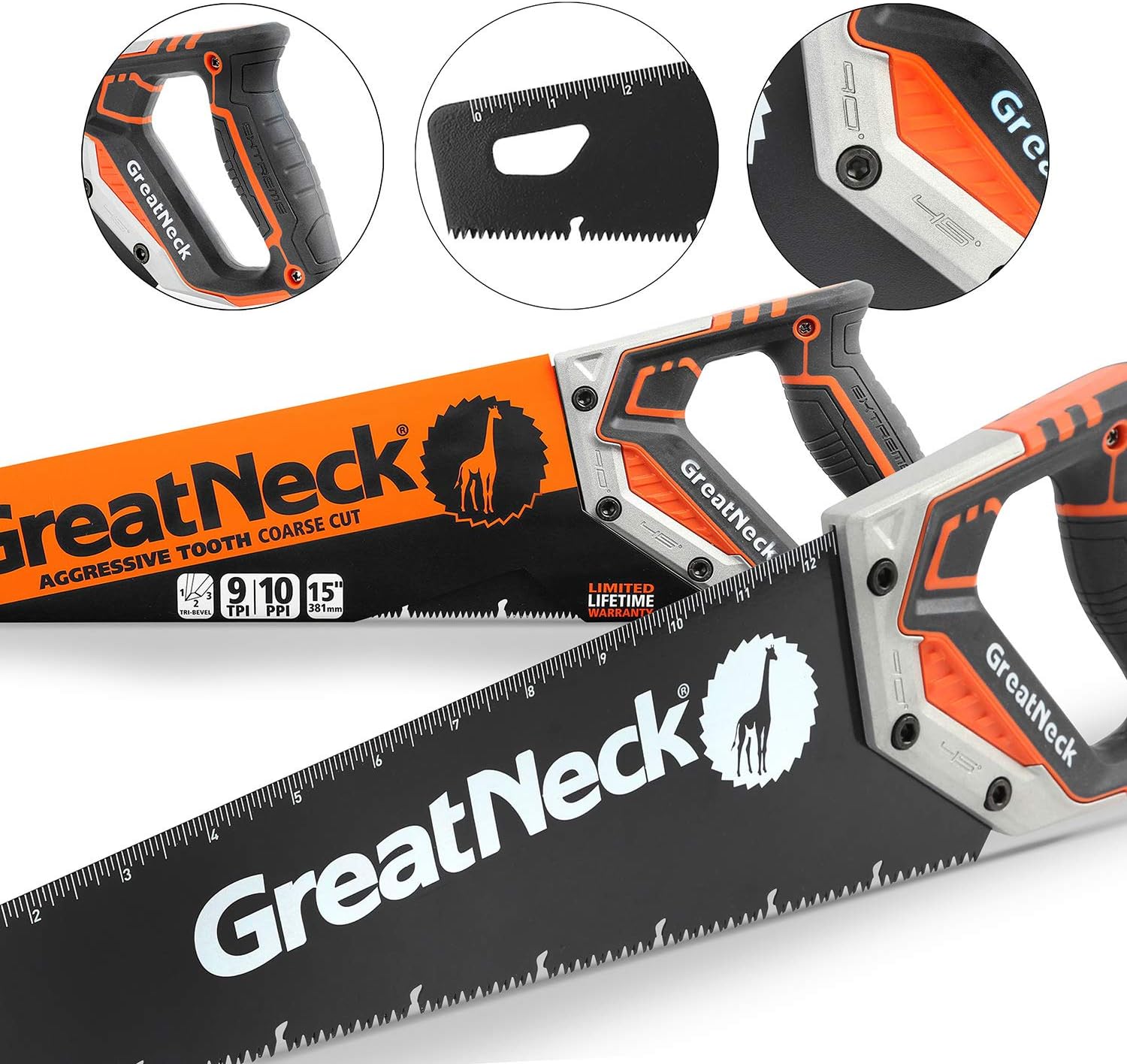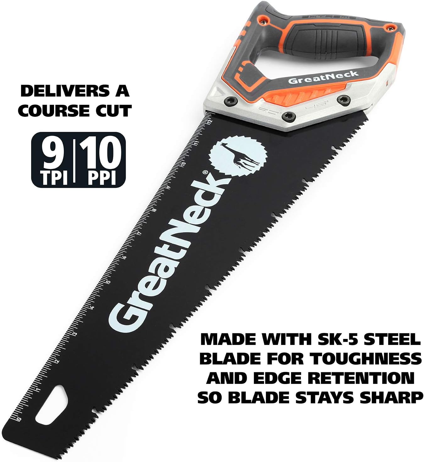 GreatNeck 74003 15″ Hand Saw, SK-5 Steel Blade, Tri-Bevel Teeth, Comfort Grip, Aluminum Frame u2013 Wood Cutting Tool for Precise, Fast Cuts