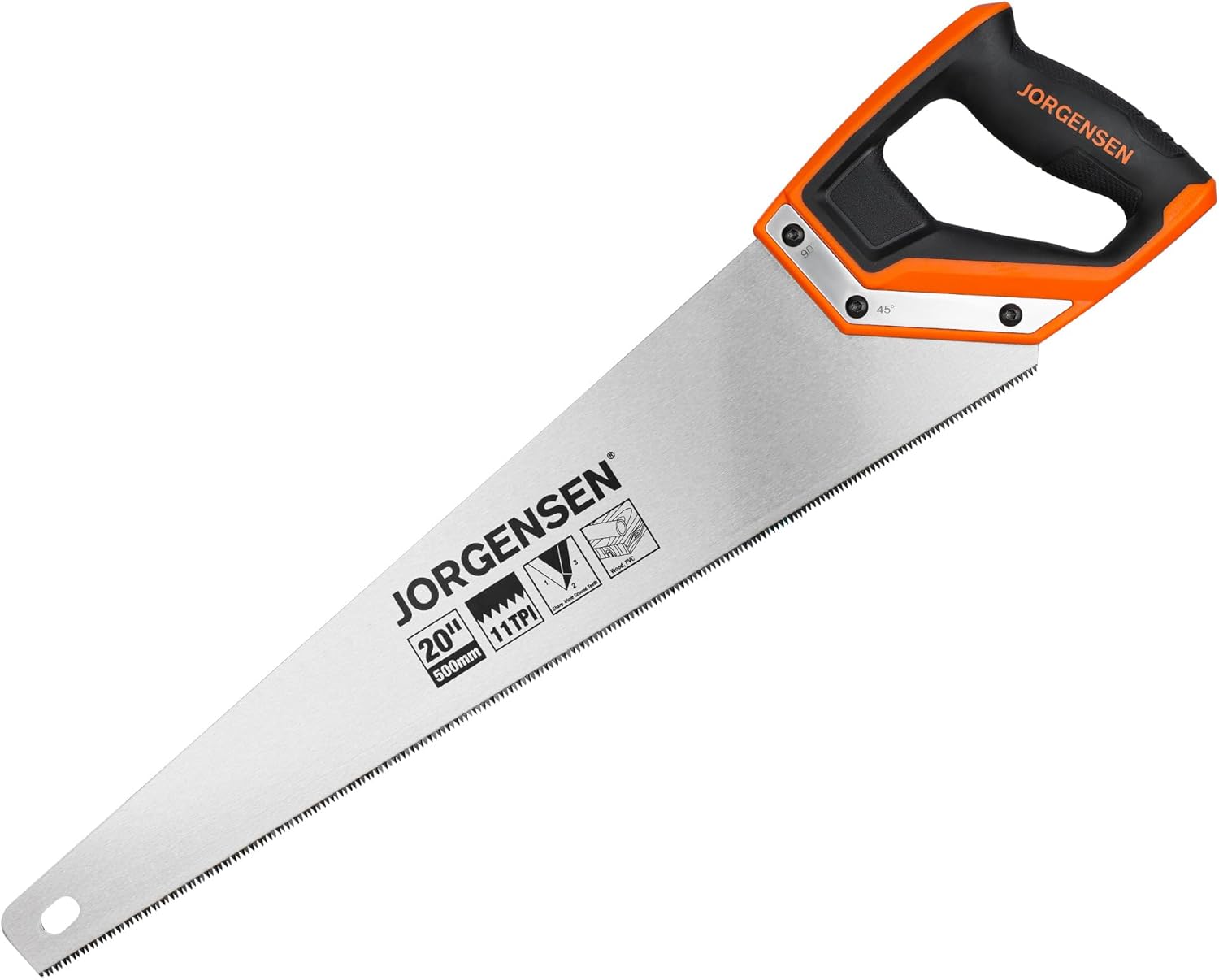 JORGENSEN 15 Inch Pro Hand Saw, 8 TPI Fine-Cut Ergonomic Non-Slip Aluminum Ultrasonic Welding Handle for Sawing, Trimming, Gardening, Woodworking, Drywall, Plastic Pipes