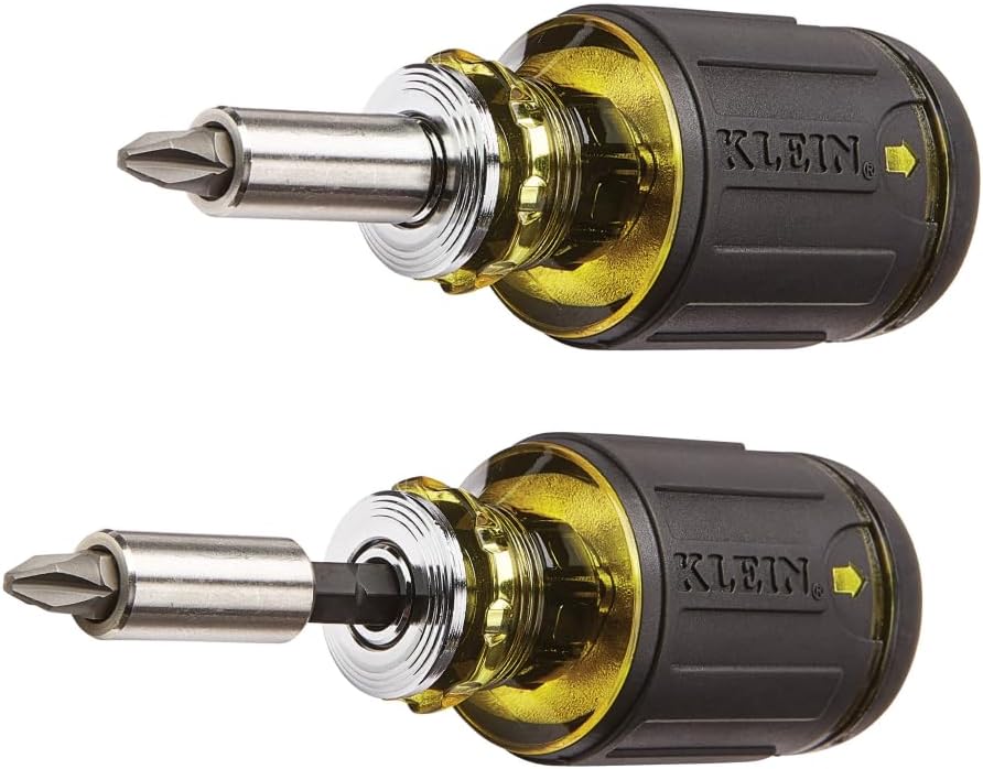 Klein Tools' Adjustable Length Screwdrivers function both as multi-bit screwdrivers and impact driver attachments. With these screwdrivers, there is no need to run back to your tool bag. Industrial-strength bits are conveniently housed in the handle.