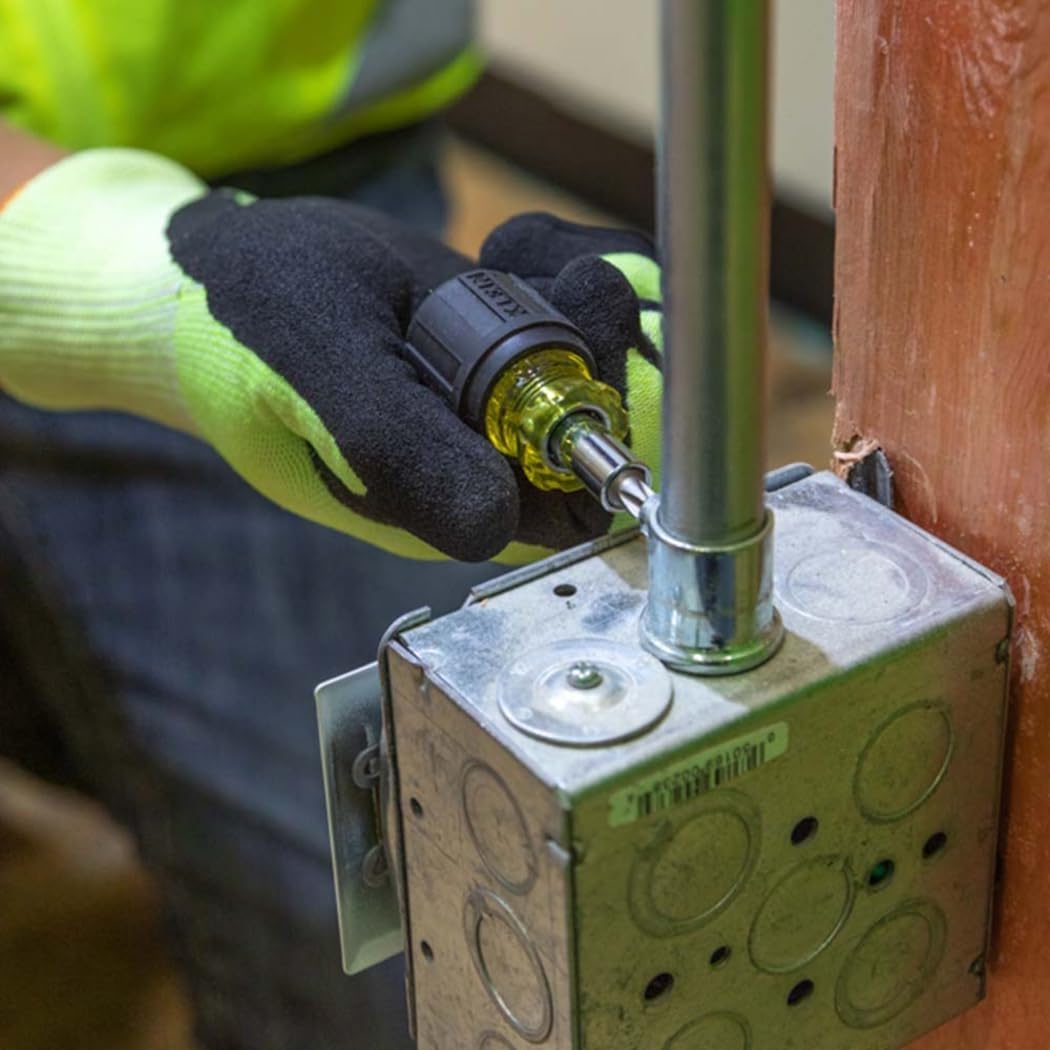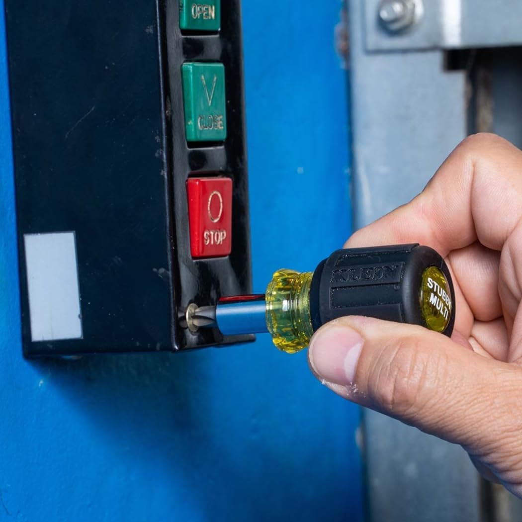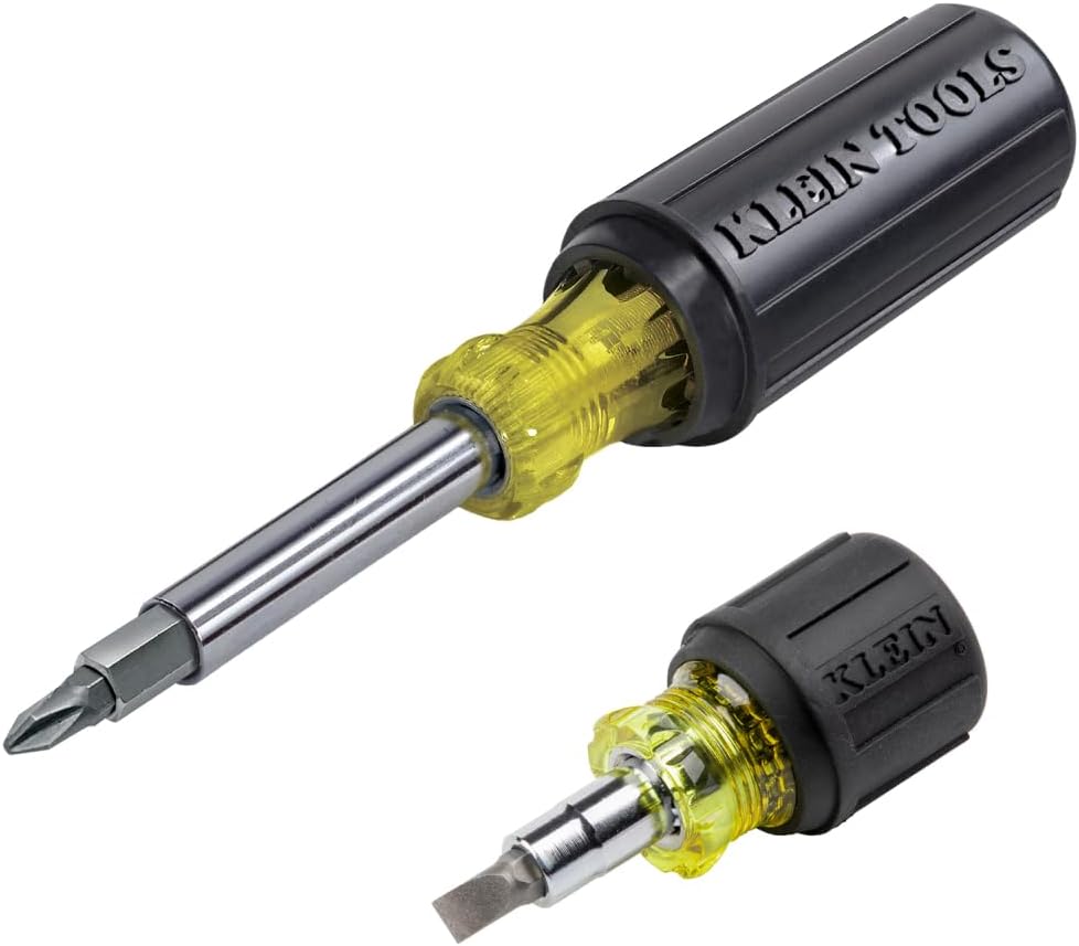 This 2-piece Klein Tools 11-in-1 multi-bit screwdriver / nut driver, and the 6-in-1 multi-bit screwdriver / nut driver stubby has everything the professional needs. The integrated screwdriver / nut driver shaft on the 11-in-1 holds 8 popular tips and converts to 3 nut driver sizes. Klein's Multi-Bit Stubby screwdriver is small to allow easy access to tight work spaces.