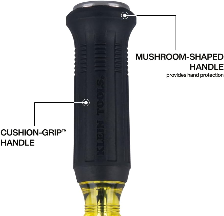 Klein Tools 6004DD 1/4-Inch Keystone Demolition Screwdriver, Steel Tip-to-Cap Construction Demo Screwdriver, Cushion-Grip Handle, Oversized Strike Cap, Square Shank with Wrench Assist