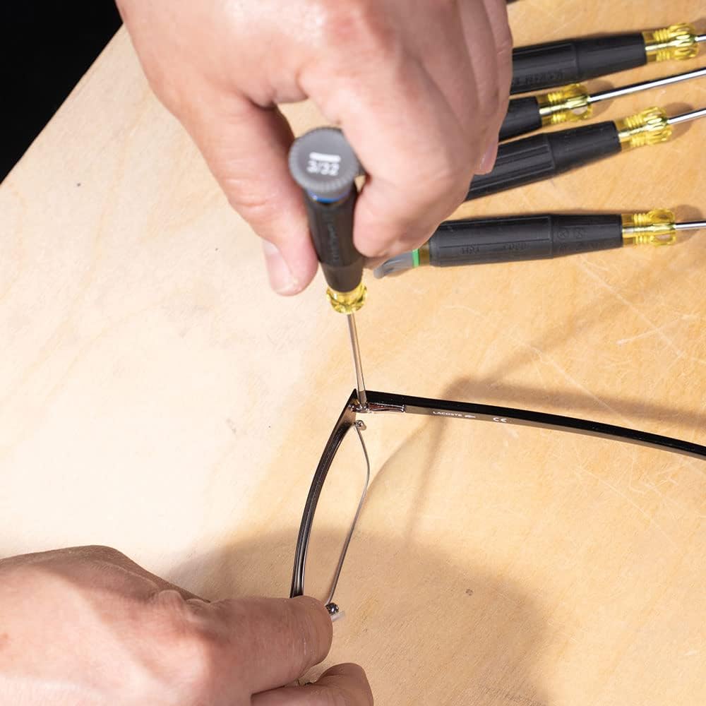 Klein Tools 8-Piece Precision Screwdriver Set helps get the job done when precision is key. These tools have all the quality and standards of full size screwdrivers with precise finger control for turning blades in tight spaces. This set includes 2 flat tip screwdrivers, 2 Phillips screwdrivers and 4 TORX screwdrivers.