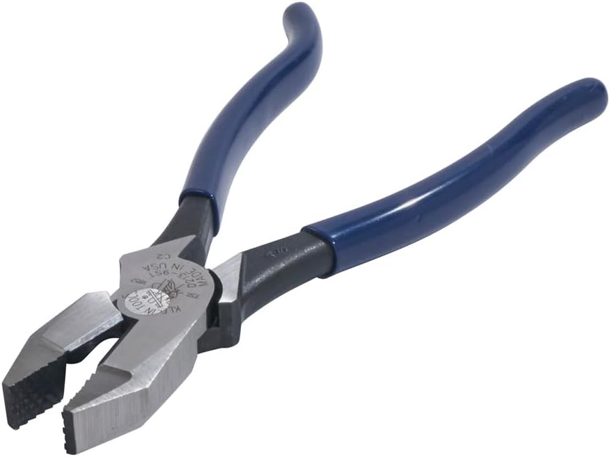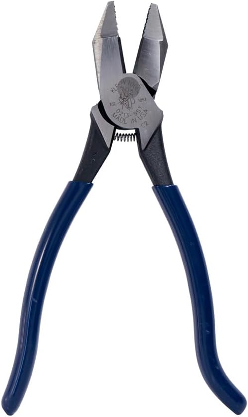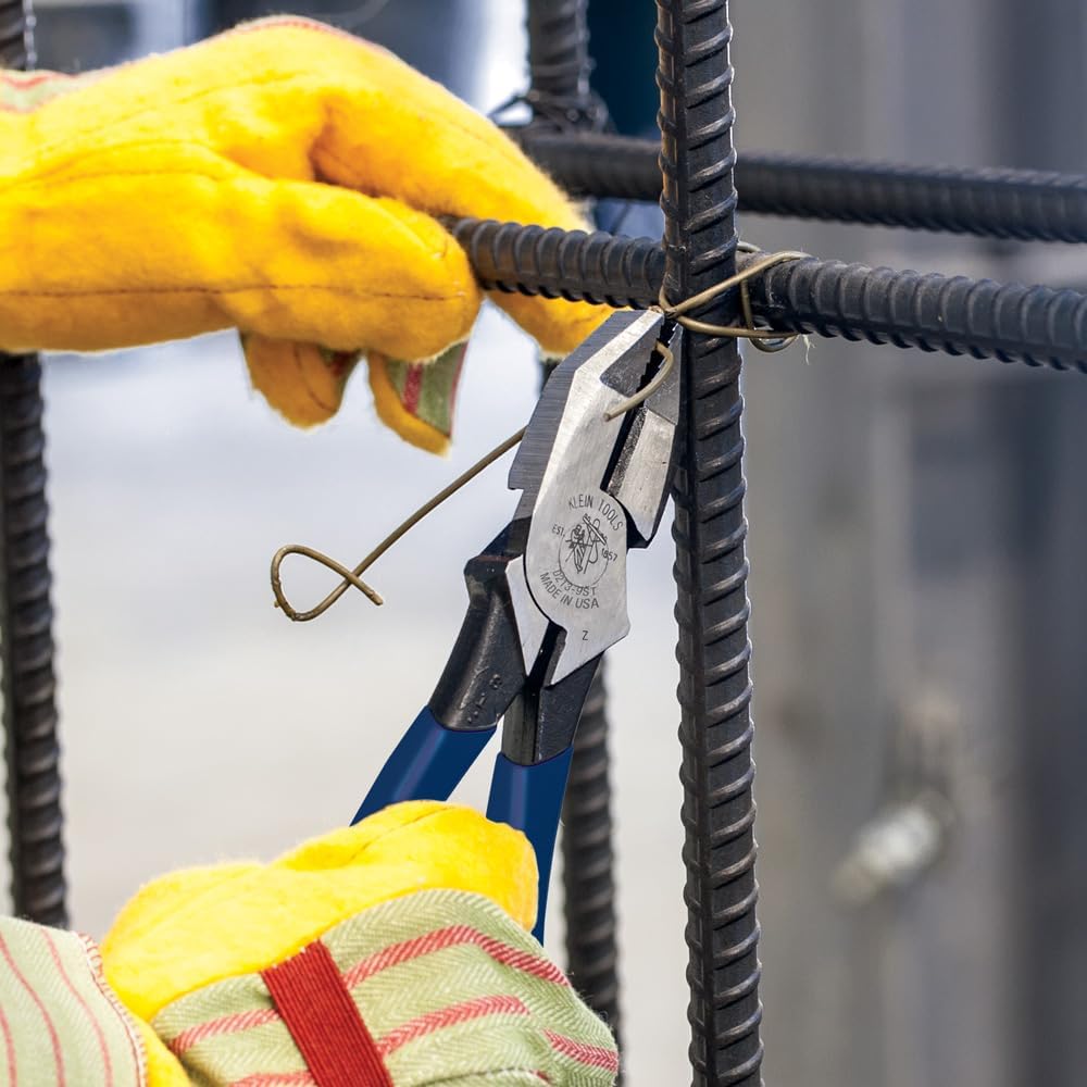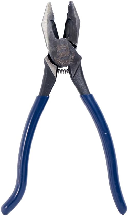 Klein Tools D213-9ST High-Leverage Ironworker’s Pliers, Made in USA, Twist and Cut Soft Annealed Tie Wire, Hook Bend Handle, Spring Loaded, Heavy-Duty Jaws