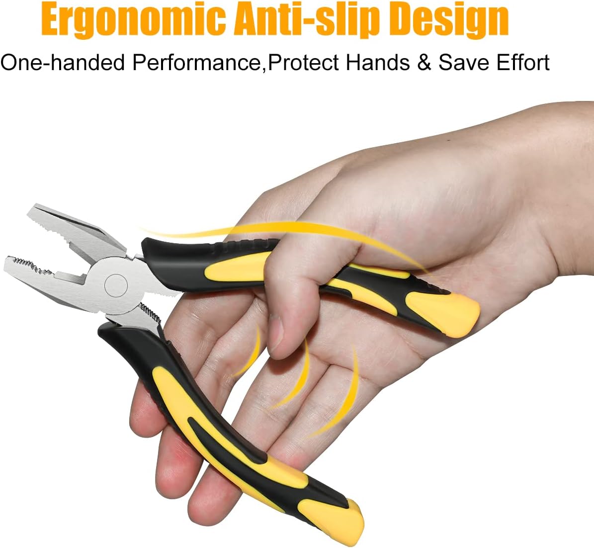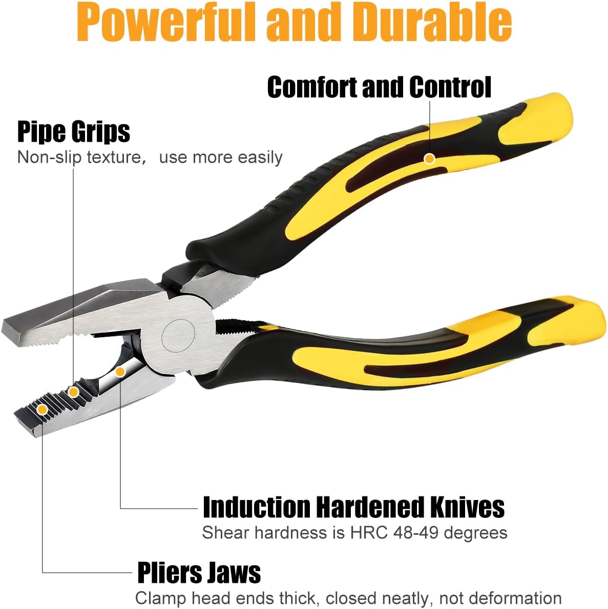 Lineman’s Pliers Combination Pliers 6 Inch & 8 Inch Pliers with Wire Cutter, Heavy Duty Chrome Vanadium Steel Construction Professional Handle