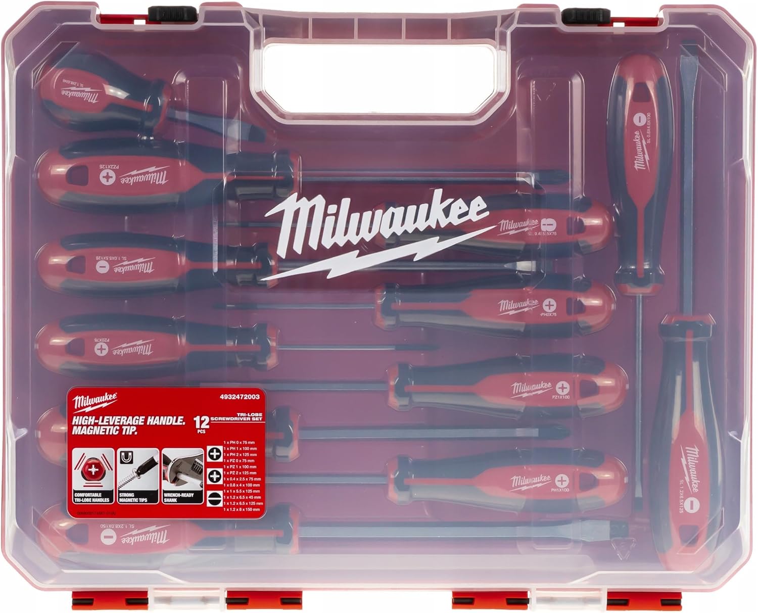 Milwaukee Set of 12 Tri-Lobe Screwdrivers 4932472003,Red
