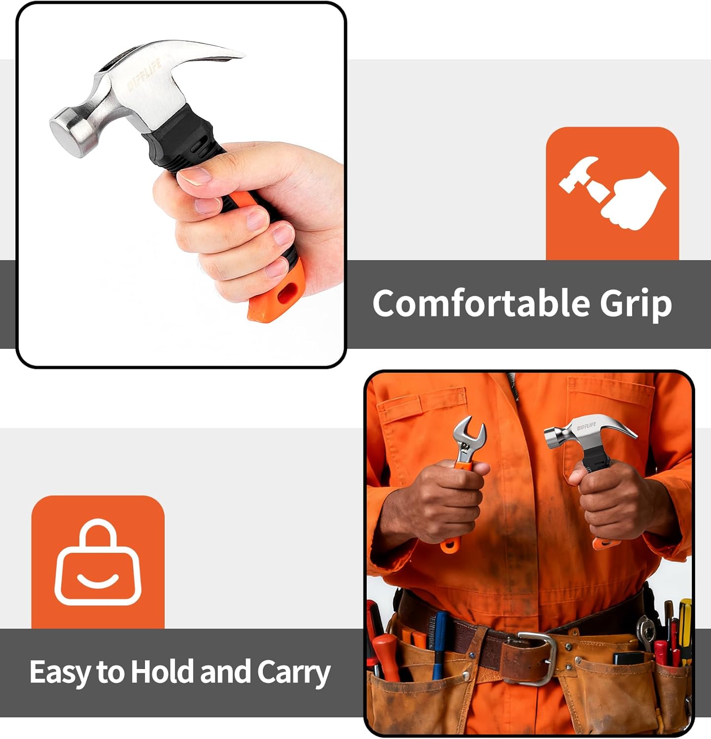 Mini Hammer Set, 8oz Lightweight Tool for Hanging Wall Decor, Hardware Kit, 8 Piece