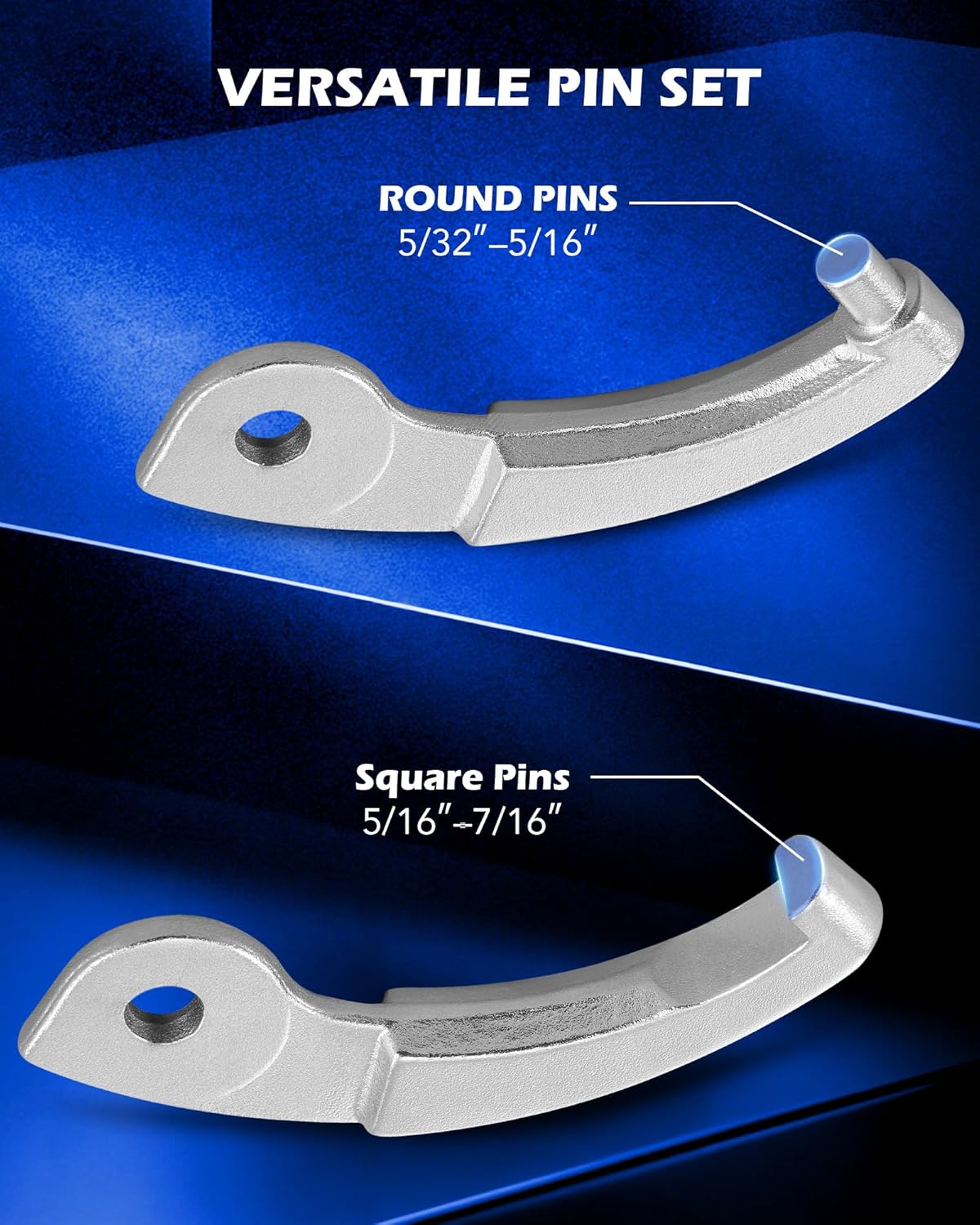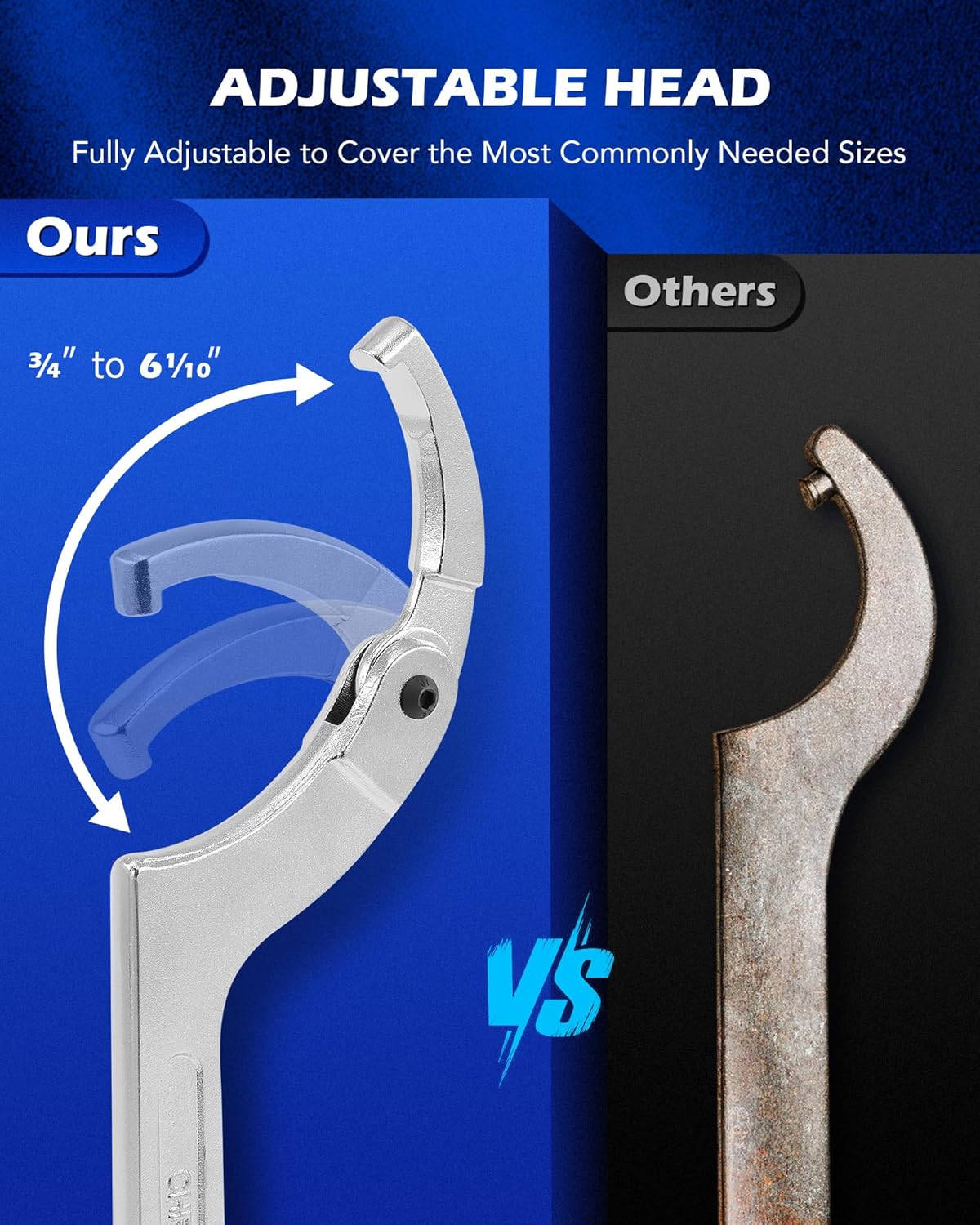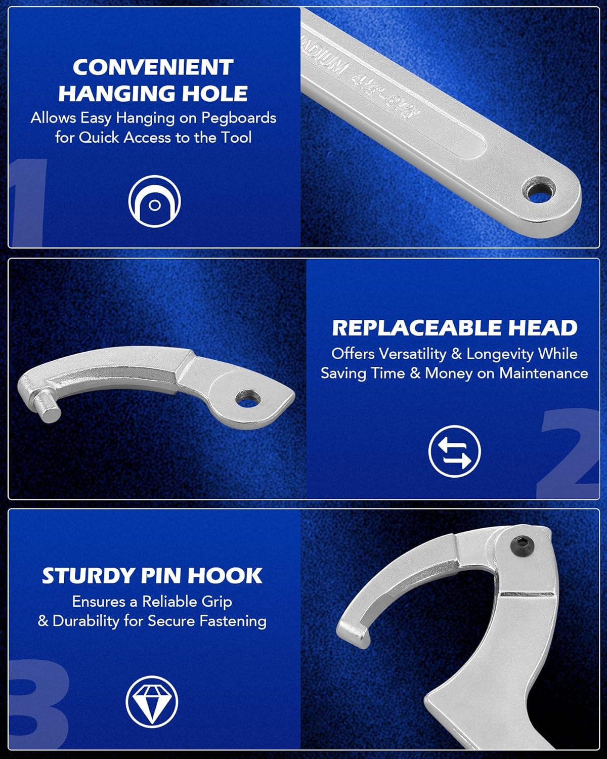 Orion Motor Tech 8pc Adjustable Pin Spanner Wrench Tool Set, Spanner Nut Wrench Tools with Changeable Heads for Pipes Heating Cars, Coilover Hook Wrenches for Suspension System, 3/4″ to 6-1/10″