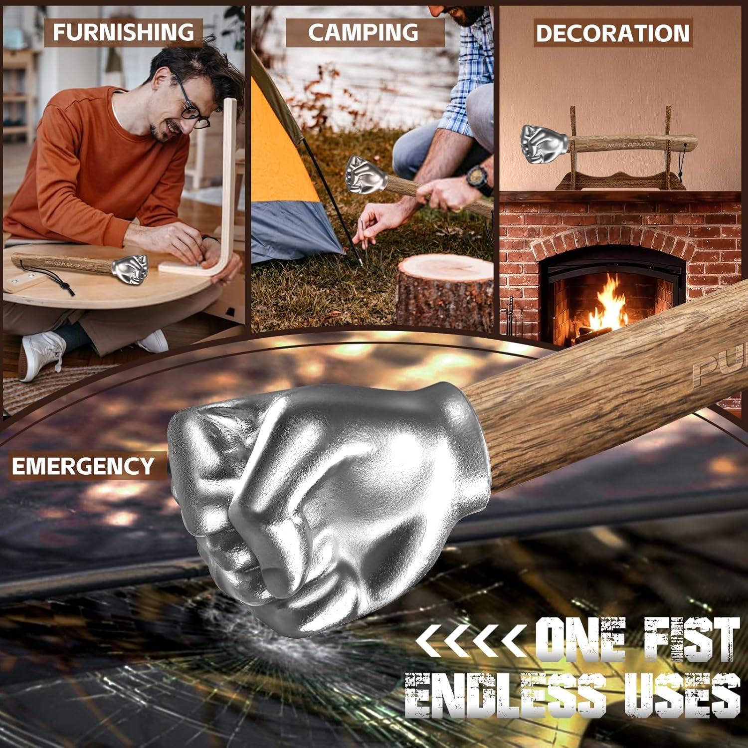 Purple Dragon Fist Hammer Tool - 2 Lbs Iron Fist-Shaped Hammer, Hand Hammers with Wooden Handle, Multi-Purpose Tool for DIY Crafting, Outdoor Camping, Home/Office Decor, Gifts for Men quantity