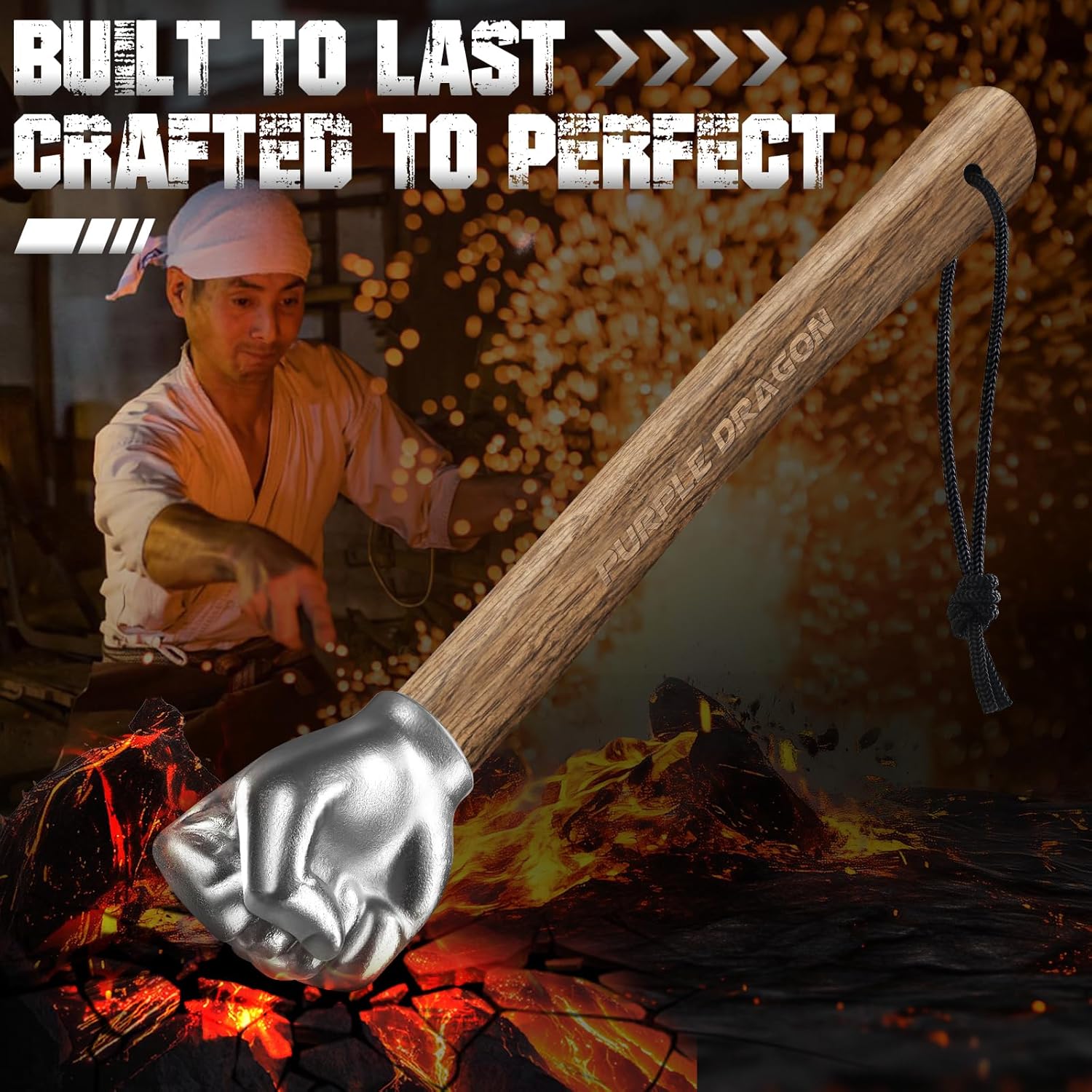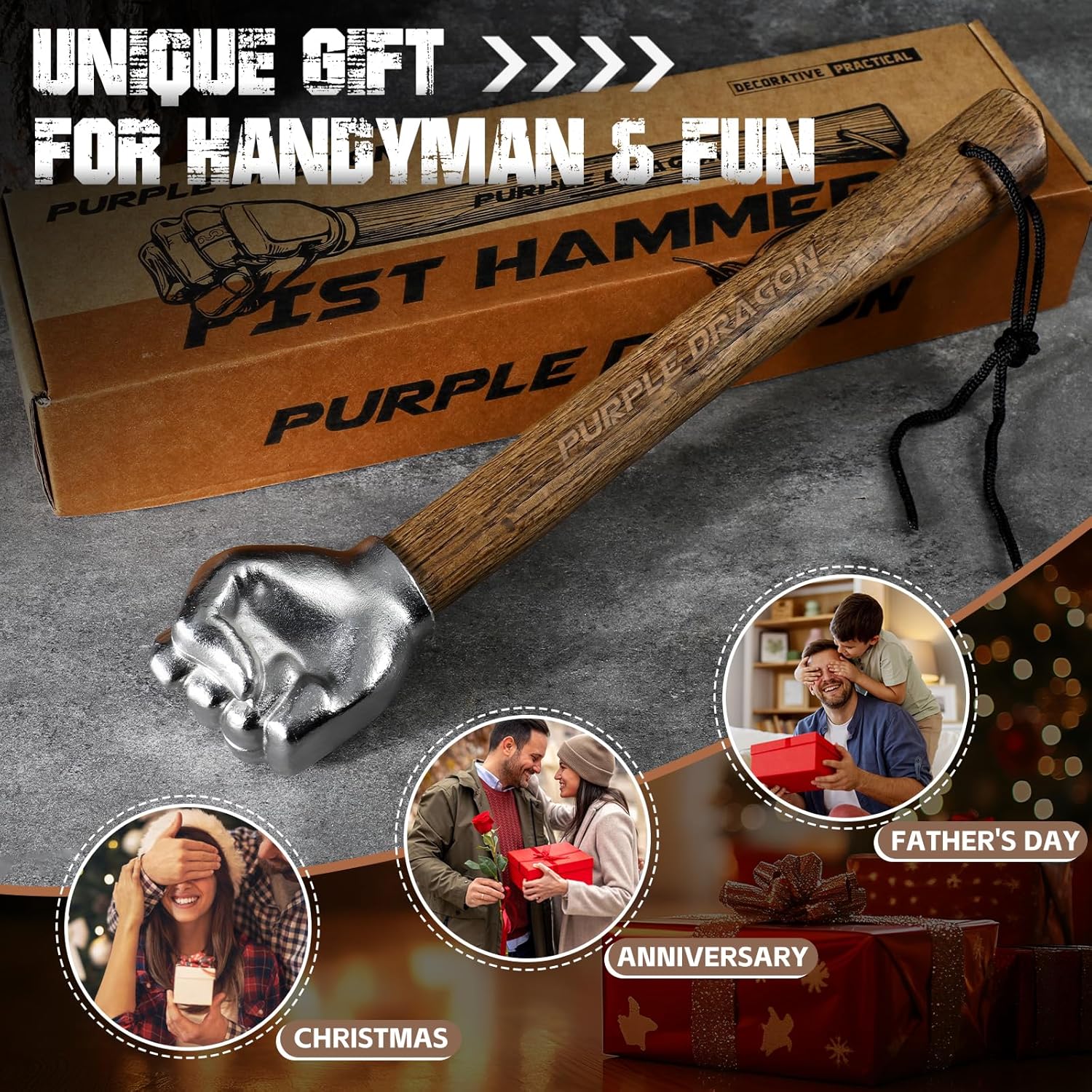Purple Dragon Fist Hammer Tool – 2 Lbs Iron Fist-Shaped Hammer, Hand Hammers with Wooden Handle, Multi-Purpose Tool for DIY Crafting, Outdoor Camping, Home/Office Decor, Gifts for Men