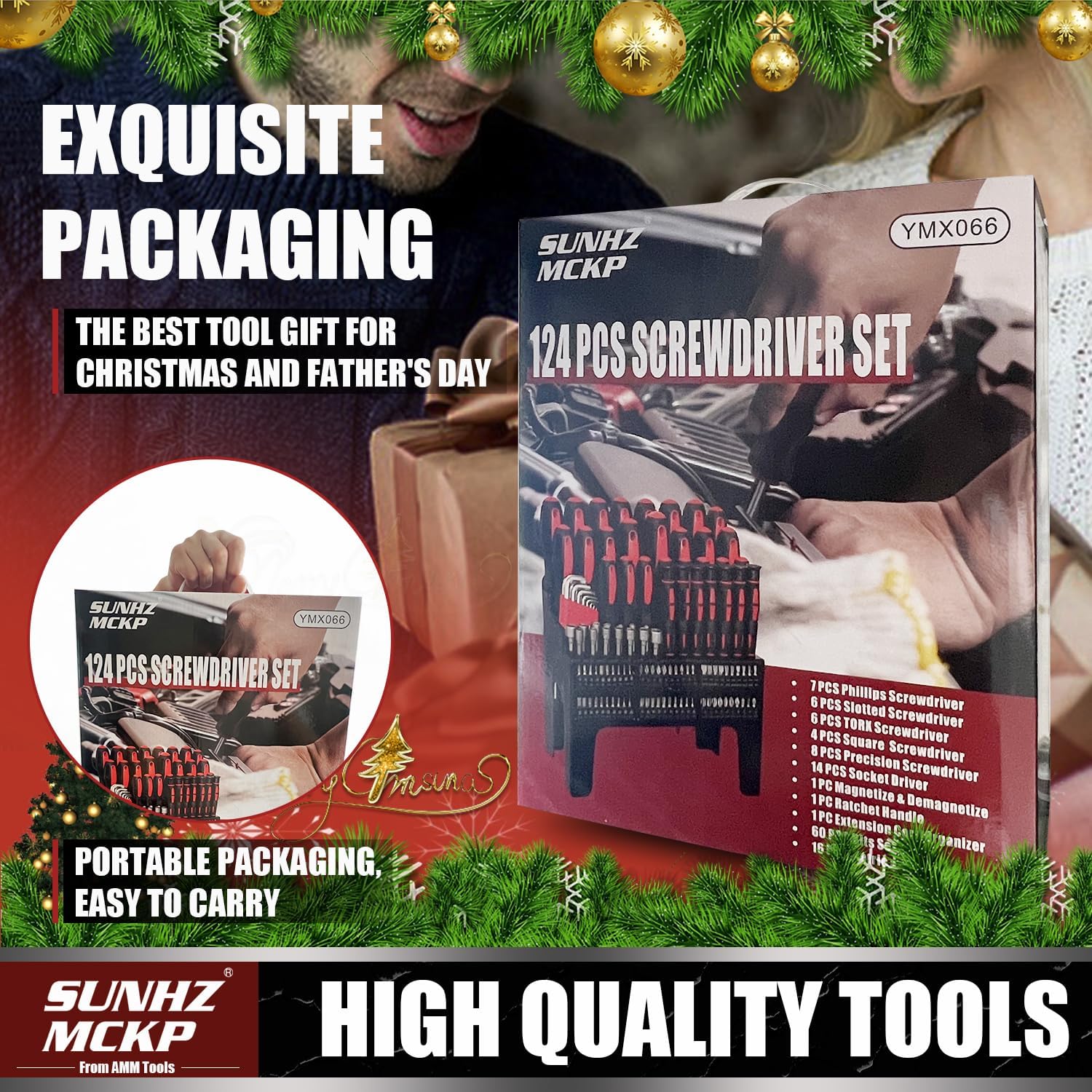 SUNHZMCKP 124-Piece Magnetic Screwdriver set, Includes Slotted, Phillips, Pozidriv, Hex, Torx and Precision Screwdriver, ratcheting screwdriver and nut drivers With Storage rack