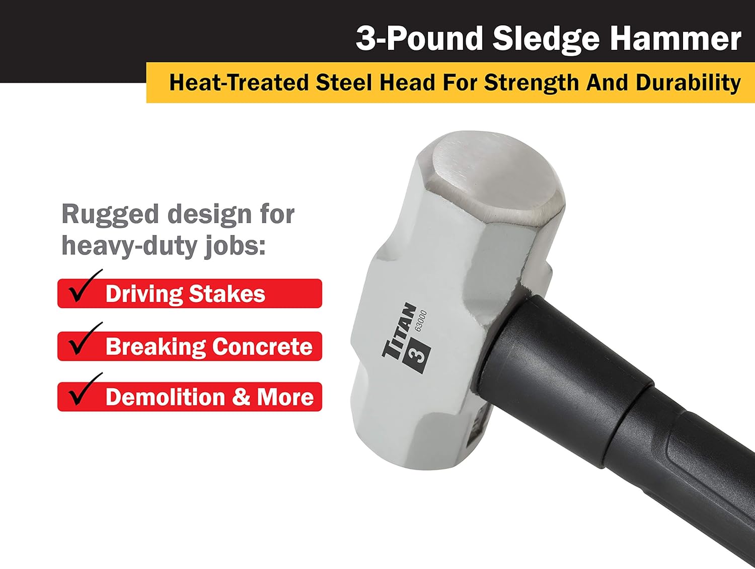Titan 63243 3lb Drilling Hammer/Sledge Hammer, 11-Inch Fiberglass Handle