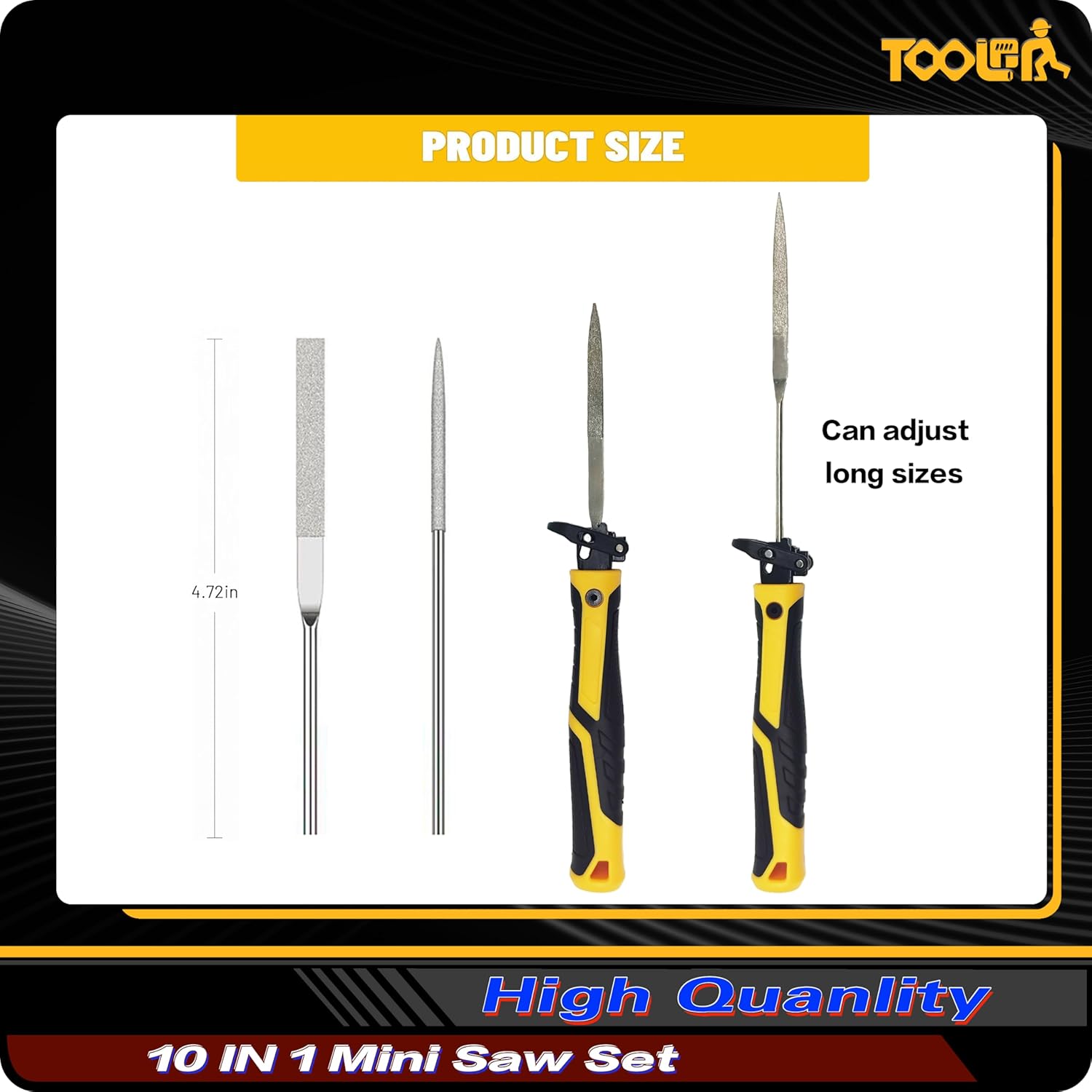TOOLAN: 10-In-1 Model Craft Hand Saw & File Set. DIY Mini Razor Saw&File Kit for Handcrafted, Modeling, Plastic, and Other Fine Cutting, Reliable Blade Quick Change Mechanism