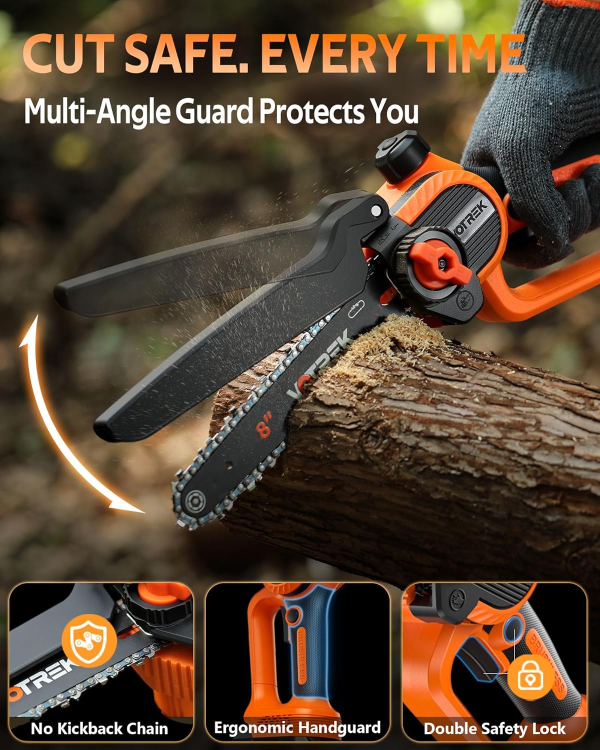 VOTREK 8-INCH Mini Chainsaw Cordless, [3.0AH] Battery Powered Electric Chain Saw, Handheld Small Hand Saw for Wood Cutting Tree Trimming Branch Cutter [Auto Oiler] [Tool-Free Tensioner] [Brushless]