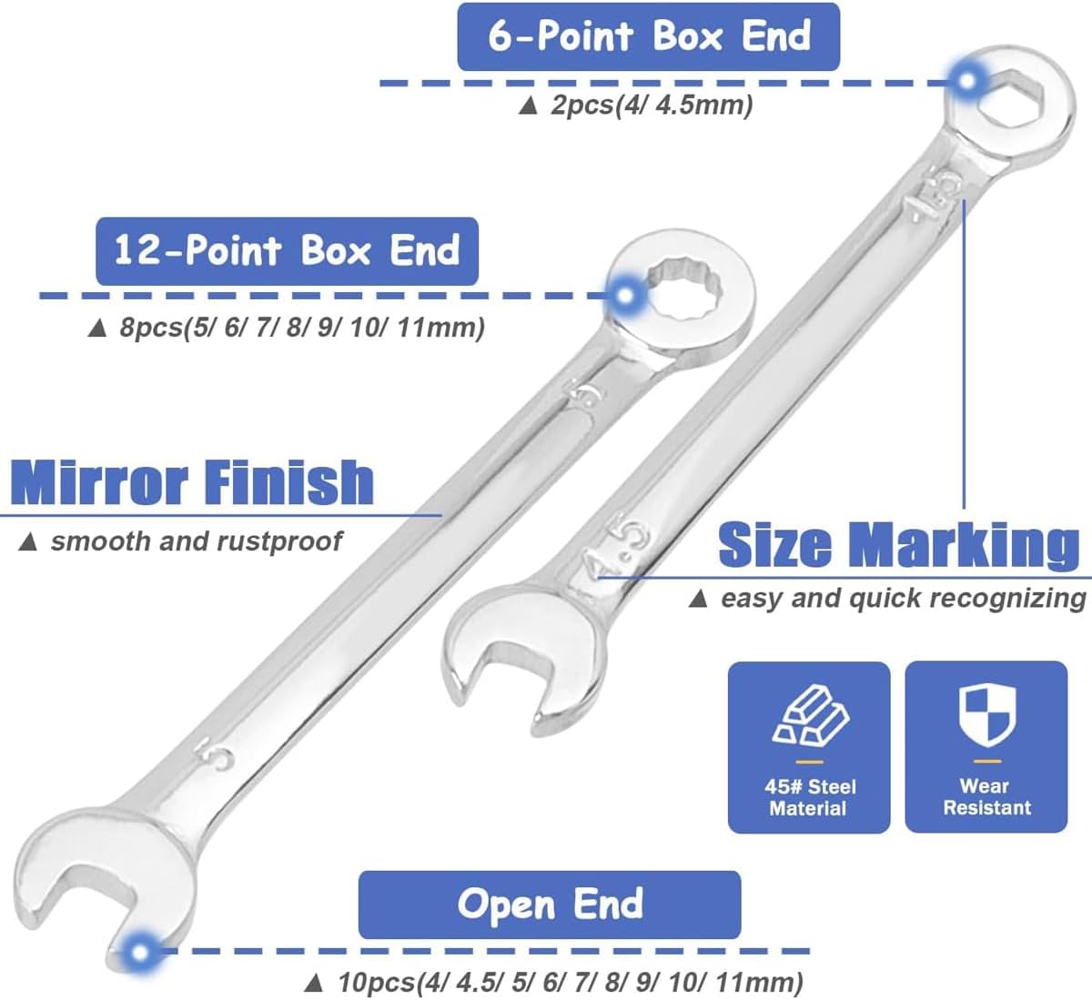 Wolfride 10 Pieces Mini Combination Wrench Set Metric