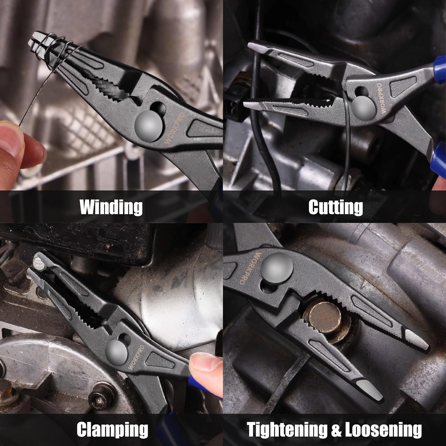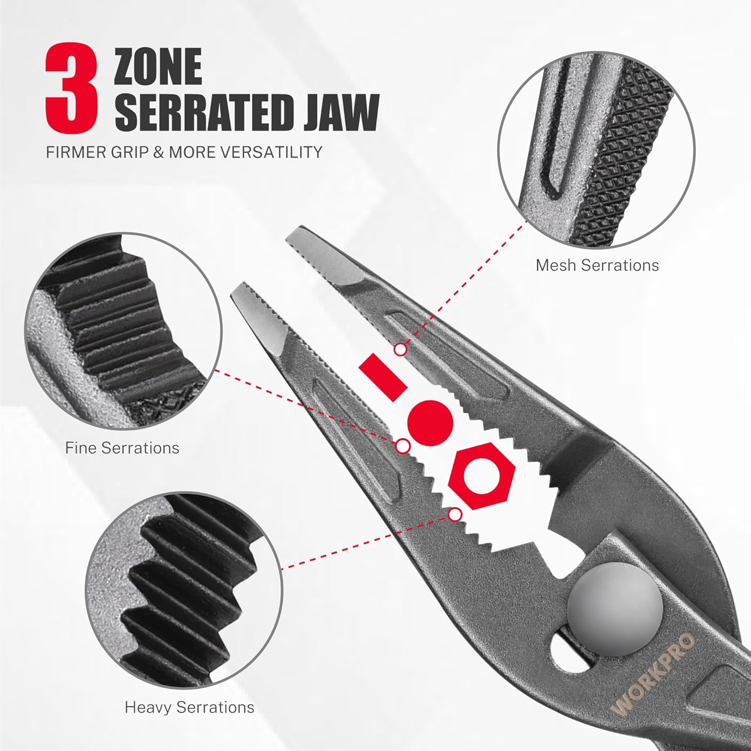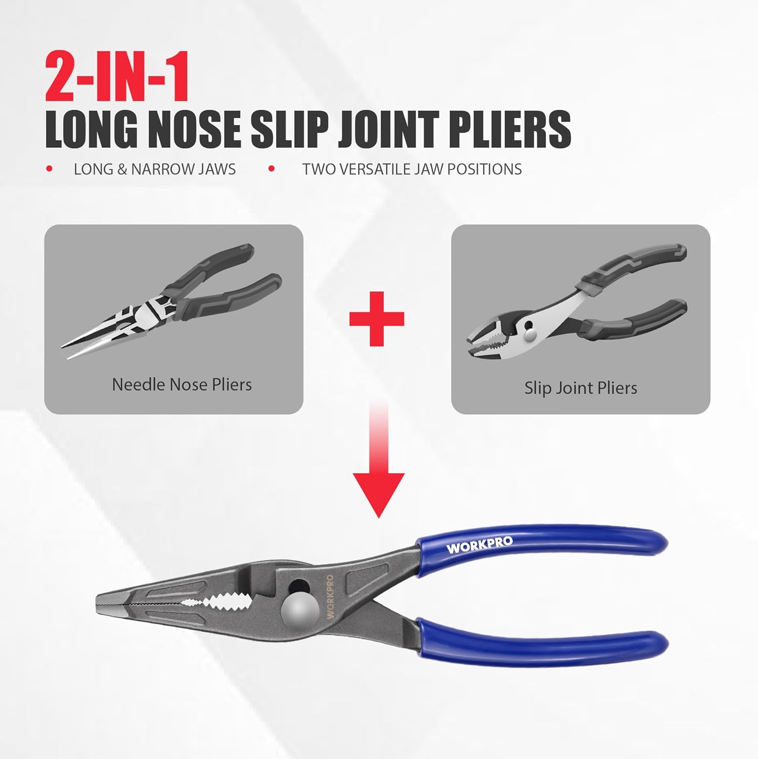 WORKPRO 8” Long Nose Slip Joint Pliers, CR-V Needle Nose Pliers with Comfortable Grip Handles, 3-Zone Serrated Jaw from Premium Steel for Clamping, Tightening and Loosening