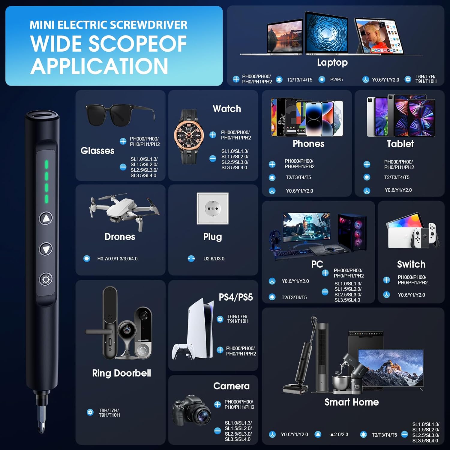 Built-in magnetic bits securely grip screws for easy, drop-free removal.